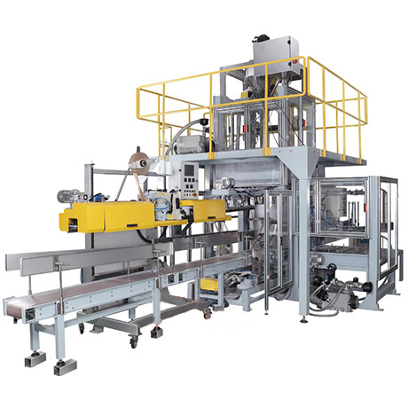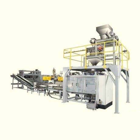 全自動(粉料)給袋包裝系統主要針對化工、食品等行業而研制的新型包裝機組。該機組具有自動供袋、上袋、稱量、填充、封口等功能??砂b物料如顏料、面粉等粉狀、超細粉料。